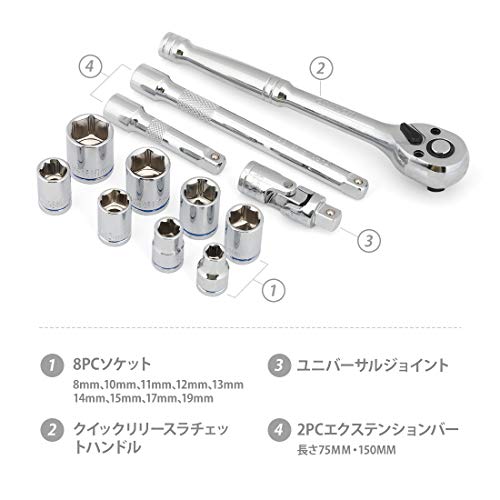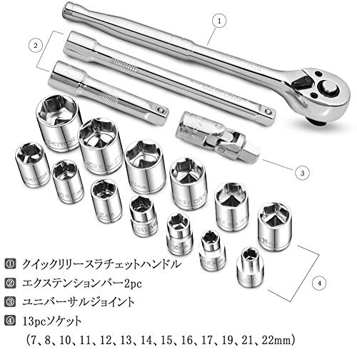 | サイズ | 8、10、12、13、14、15、17mm + 3/8inch |
