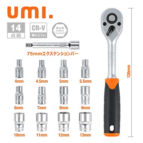 Amazonのブランド・Umi.(ウミ)のソケットレンチセットは、ボルトやナットねじの締め付けなどに役立てられます。車やバイクの修理用・機器用の補修工具としてなど、様々な使い方ができるお値段のリーズナブルなセット商品です。