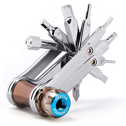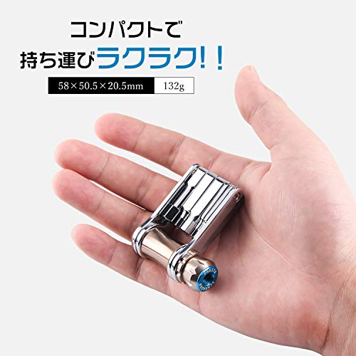 コンパクトサイズで携帯にも便利な軽量マルチツールで、ロードバイクやクロスバイクでのサイクリングや移動中の故障に備えて携帯しておけます。プラススクリュードライバー・マイナスドライバー・六角レンチ(2/2.5/3/4/5/6/8mm)・スクリュードライバーT25などの高精度な工具がセットとなっています。高品質で丈夫な合金スチール製のマルチツールで、サドルバッグなどにもすっぽりと収納しておけます。