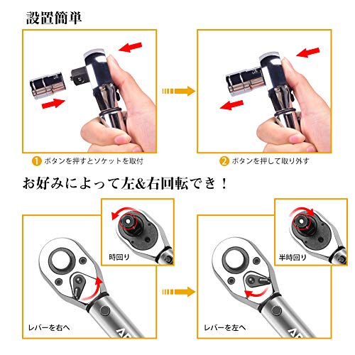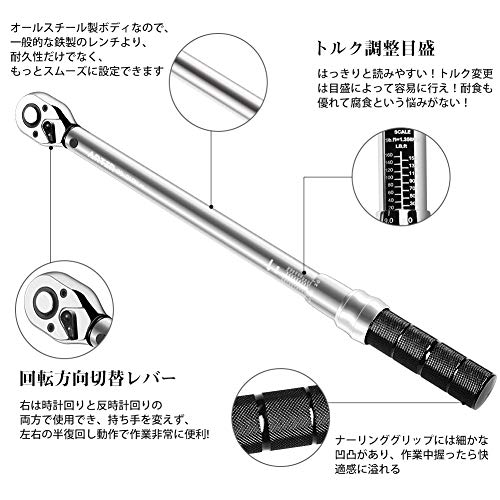 | 内容 | トルクレンチ本体、17/19/21/24mmソケット、差込角:1/4インチ、エクステンションバー:125mm |