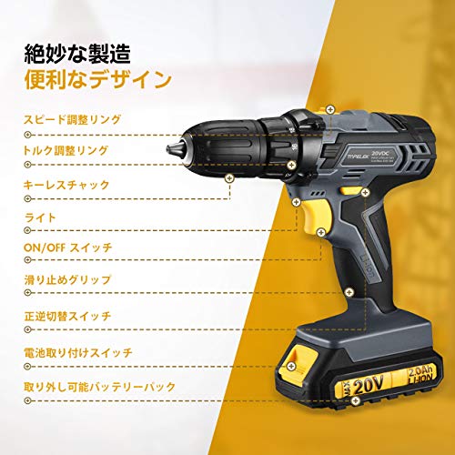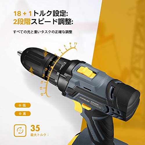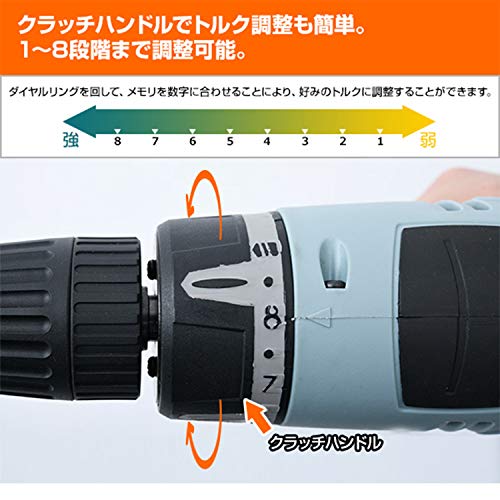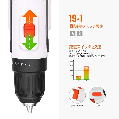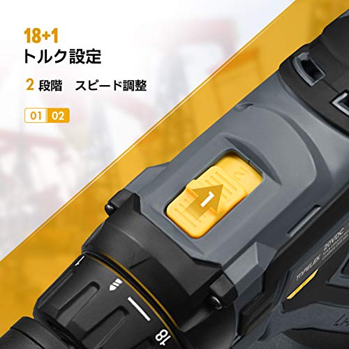 TOPELEKの商品もアイリスオーヤマの製品と同じく充電速度が早いのが特徴です。ドリル回転時にライトが付くので暗いところでの作業も可能になります。また、ツールボックスや替刃などが付属してこの値段なので非常にコスパに優れた商品です。また、簡易的ではありますが、トルクの設定を変えたり回転速度を変えることが出来ます。