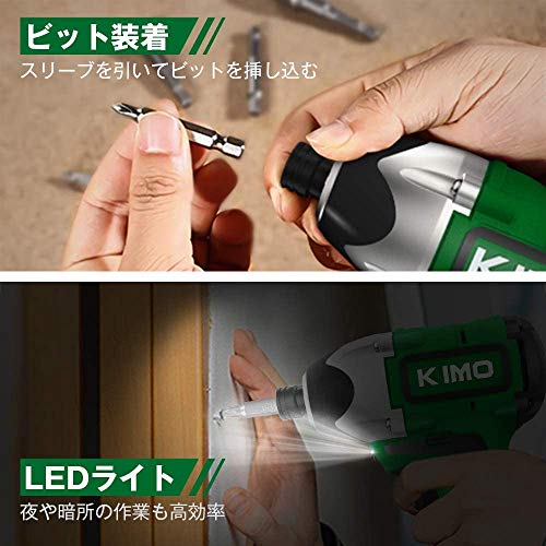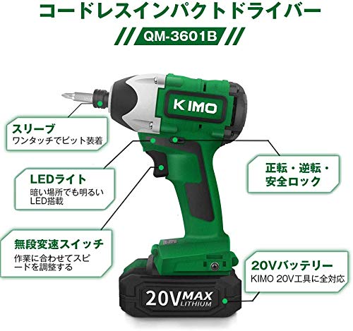 KIMO QM-3601bは海外のメーカーの製品です。グリーンで統一されたデザインが特徴の商品になります。ドリルを入れるところが他の製品に比べて異なる作りです。マキタ等の場合チャック式といってドリルを入れた後チャックを閉めて固定します。ですがこの商品はスリーブを開いてドリルを取り付けて締める構造です。