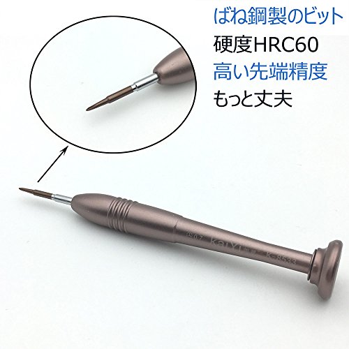 KY-8533は先端が、ばね鋼製のビットで、硬度HRC60と非常に硬い商品です。ビットが柔らかいと、ネジに負けて精密ドライバーが壊れてしまう恐れがあります。