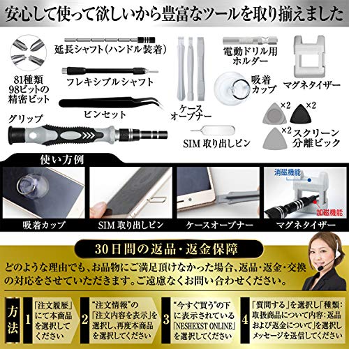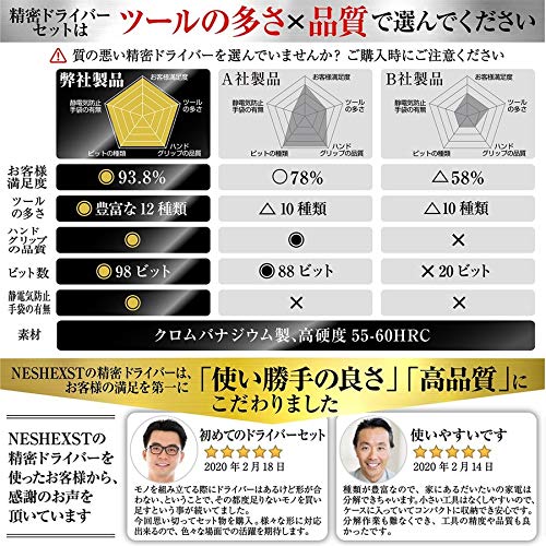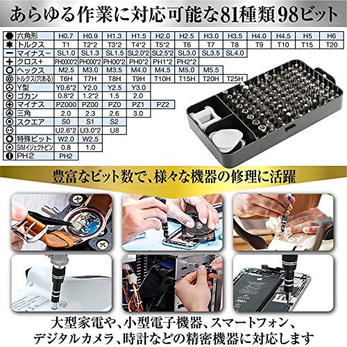 NESHEXSTの精密ドライバーセットは、81種類ものビットがセットになっている商品です。この商品があれば、多数のネジ頭の形状やサイズに合うので使い勝手が良い商品になります。