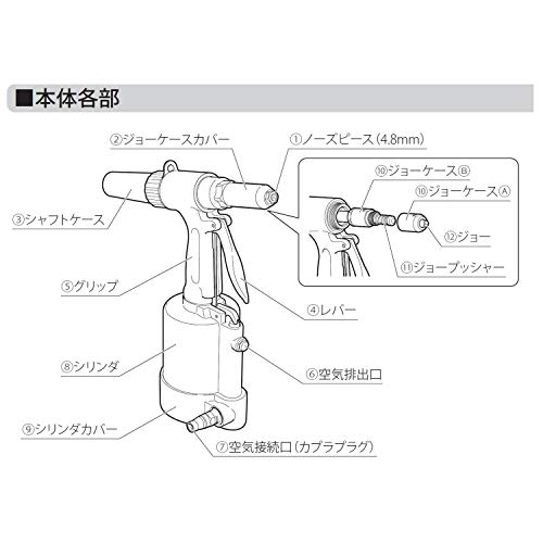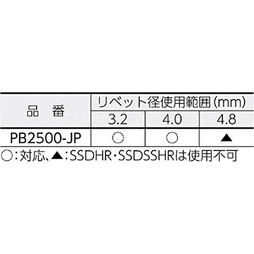 リベットの径は3.2、4.0、4.8に対応しています。リベットの径を変えるごとにパーツを取り換えて作業してください。重さはありますが、作業効率も高いので、その点がいいなと思った方はこちらの商品をチェックしてみてください。