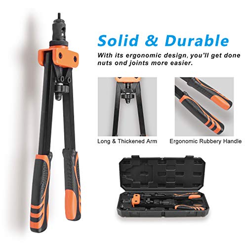 こちらの工具の詳細についてですが、サイズが14インチでできています。リベットナットツールは炭素鋼でできており、耐久性、強度、耐腐食性があります。金属板に利用するのはもちろん、車、家具のDIYにも利用可能です。