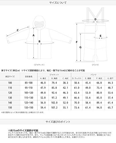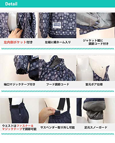 取り外しもできる大きなフードを採用しているジャケットや、サスペンダーのついたパンツと、子供も安心して身に着けられます。ジャケット&パンツともにデザインやカラーが可愛いので子供のお気に入りになるでしょう。