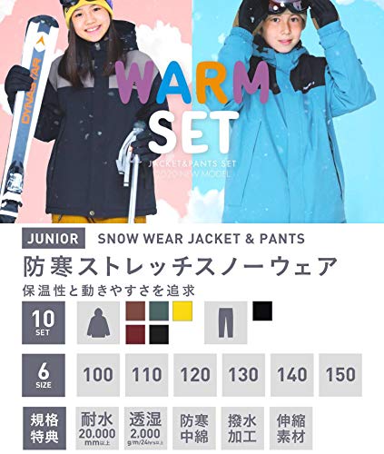 耐水性が3000mm以上で、透湿性もある生地で作られていますので、雪の水分もしっかりと防止でき、発汗した時にも水蒸気を外に排出して、蒸れの少ない着心地をキープ出来るジュニア用セットアップです。