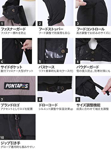 ポンタペスというブランドから販売されているメンズ&レディース用のスノボウェア一式セットなります。平均的なスノボウェア上下セットの相場よりも価格が抑えめなので、安いお値段でも高品質なセットアップが欲しいという方におすすめな商品です。