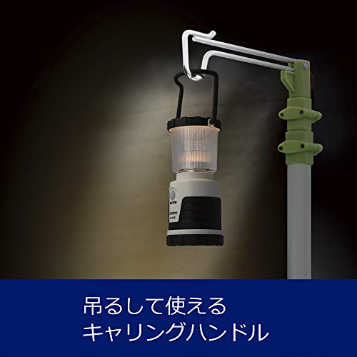 | 仕様 | 使用電池:単1形電池×4本(別売り)、使用光源:高輝度チップタイプ白色LED×20灯・高輝度チップタイプ暖色LED×20灯、実用点灯:白色(強/7時間、弱/260時間)、昼白色(強/16時間、弱/350時間)、暖色(強/16時間、弱/350時間)、キャンドル/300時間 |