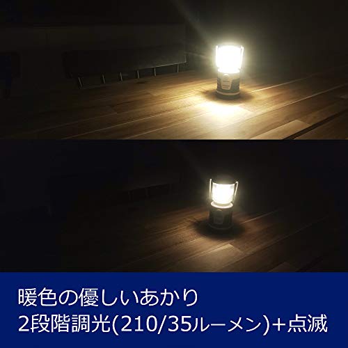明るさが210ルーメンのハイモードと、明るさが35ルーメンのエコモードの2種類のモードから選択できます。さらにIP64の防塵防滴仕様なので、雨水や細かな砂埃が付着しても故障しにくい小型LEDランタンです。吊るして使えるキャリングハンドルや、逆さにも吊るせるビルトインフックも付いています。一定時間経過した後にスイッチを押せば、どのモードからでも1回の操作で消灯可能なインスタントオフスイッチ機能も付いています。夜間のキャンプでも定番の照明として愛用していく事ができ、購入者の口コミでも評判良いLEDランタンです。