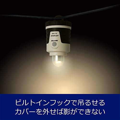 明るさが280ルーメンでハイモードでは最大72時間連続での使用可能で、ローモードでは144時間連続で使用できます。スイッチがオフ状態の時でも本体の置き場所がわかるようになっている本体認識表示灯が付いていて、持ち運びしやすいようにキャリングハンドルが装備されています。本体をキャンプテント内のランタンフックから吊るせるハンガーフックが付いていて、カバーを取り外してビルトインフックで逆さまに吊るす事も可能な小型LEDランタンです。電池込みでも軽量なコンパクトランタンなので持ち運びも簡単も簡単です。