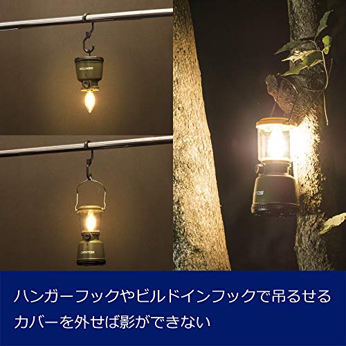 シチュエーションに応じて白色・昼白色・暖色の3種類の光の色に変えられる調色機能がついていて、白色の明るさが1000ルーメン、昼白色の明るさが700ルーメン、暖色の明るさが450ルーメンとなっています。テント内のランタンフックから吊るす事ができるハンガーフック付きで、充電が必要となった場合には前もって知らせてくれるインジケーターのついています。ペットボトル飲料よりも高さがなく、横幅もスリムな大きさのない小型ランタンなので持ち運びも簡単です。キャンプや釣りや登山など種類多くのアウトドアで定番のLEDランタンとして使っていく事ができます。