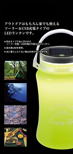 太陽光からのエネルギーを吸収するソーラー充電とUSB充電に対応しているレビューでも評判良い人気商品です。サイズもコンパクトで、上部にはハンドルも付いていますのでキャンプでも持ち運びがしやすいです。本体上部にはスイッチがついていますので、ハイ・ロー・点滅・消灯と簡単に切り替えることができます。グリーンとピンクとブルーの3種類の色から選ぶことができるソーラーランタンで、グリーンは暖色系のような色合いの明かりを灯せます。