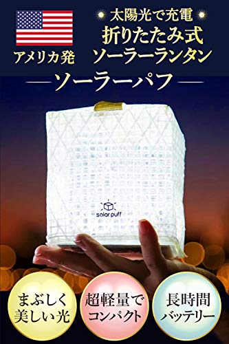 ソライトデザインというブランドより販売されているソーラーパフ・折りたたみ式は、暖色系の明るい灯りを放つコンパクトサイズのソーラーランタンです。防水仕様なので、緊急防災時にも役立てられます。明かりの色や手軽さや商品の質感などが期待以上で良かったというレビューや、本当に軽くて折りたためるので大変気に入っているというレビューも投稿されている人気商品です。