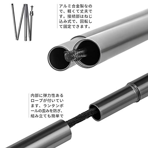 バイクのため収納に制限があるのでコンパクトにできることを重視して選びました。組み立ては簡単です。筒の中にワイヤーが通っているのでバラバラになりません。軽量コンパクトな分華奢な感じですが、ロゴスの12LEDパワーランタンを吊るして数回使用しましたが、今のところ大丈夫です。
