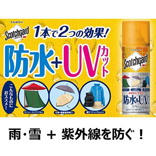 スリーエムの防水スプレーはスノーウェアによく使われるタイプのものとなります。水分だけでなく紫外線を遮り、色あせも予防してくれます。ウェア以外にもタープやテント、グローブ・キャップにも使用できますので、おすすめします。