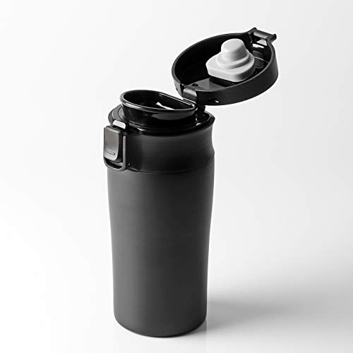 重さも軽量なタンブラーになりますので、自宅やオフィスだけでなく、キャンプなどのアウトドアや旅行先にも携帯しやすいです。真空断熱構造なので保冷力や保温力も抜群で、いつでも温かい&冷たいドリンクを楽しむことができます。蓋を閉めるだけでロックがかかるようになっている自動ロック機能が付いており、鞄の中に入れて安全に携帯できます。開閉ボタンを下げながら押すことにより同時にロックが解除されるようになっているワンタッチオープン式でもあります。市販のドリッパーで直接コーヒーをドリップできる大きな口径のタンブラーで、使った後には中身も洗いやすいです。