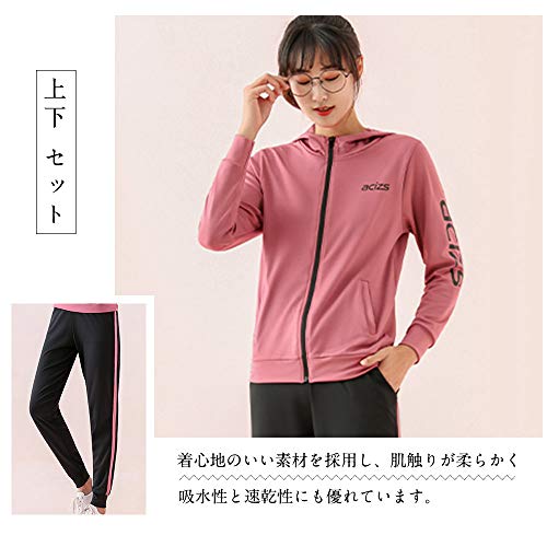 ストレッチ性に優れているセットアップになりますので、ジョギング中にアクティブに体を動かしても窮屈感を感じにくく初心者ランナーにも着やすいです。ジャケット&パンツ共に汗を素早く吸収して発散させ、ベタつきを軽減して爽やかな着心地をキープする吸水速乾性に優れている特徴があります。さらに90%以上も遮蔽率を確保しているため、有害な紫外線からお肌をガードしながら着用できるジャージ一式セットです。