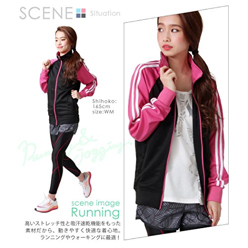 優れた伸縮性と吸汗速乾機能を併せ持っている上着&パンツのセットアップになりますので、ジョギングをしている最中にも動きやすくて初心者ランナーにも着やすいです。上着は女性らしいくびれのあるシルエットとなっており、ポケットにはファスナーが付いていますのでジョギング中に小物を落とす心配もないです。