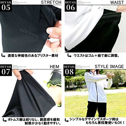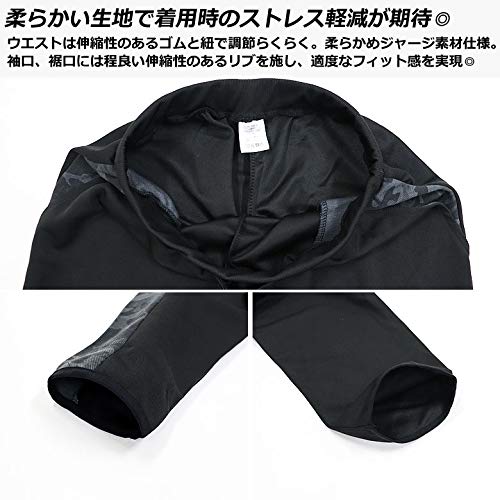 ボトムスはウエスト部分に紐がついていて、サイズ感を調整できるようになっています。さらにファスナーなしのポケットもついていて小物を入れて持ち運びできます。ブラック・Lインク・ホワイトの全3種類のかっこいい色から選べる商品で、一式セットでありながらも安いお値段で購入できます。