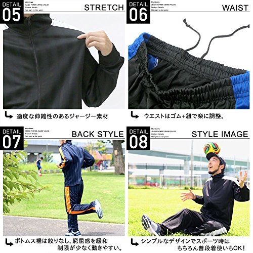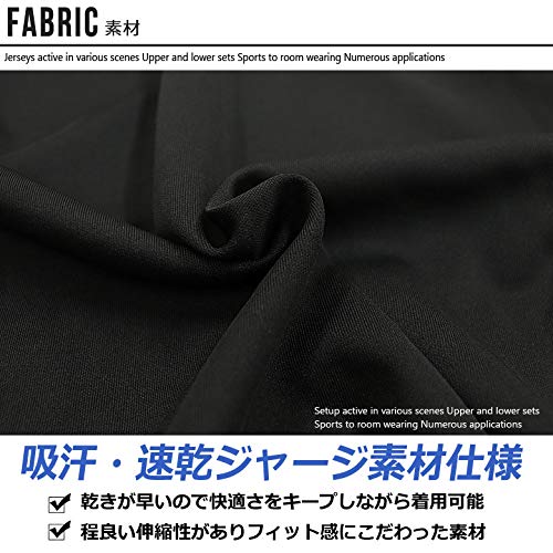 吸汗速乾性に優れているジャージになりますので、ジョギングしている時に大量に汗をかいた際にもベタつきにくくて快適に着用できます。適度に伸縮性に優れているジャージー素材を採用しているため、走っている時にも窮屈な感じも少なく快適なセットアップです。パンツのウエスト部分はゴムと紐により簡単に調整できます。