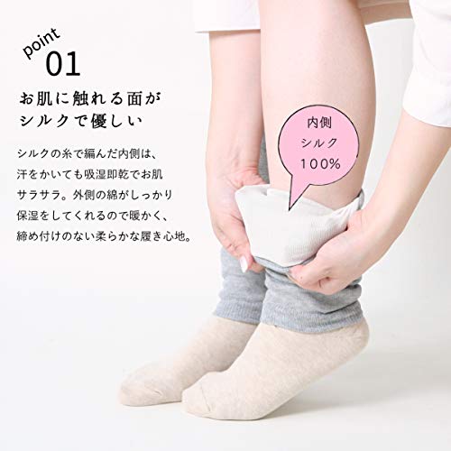 吸湿性や保湿性に優れているシルク面を内側に採用していることにより、汗をかいて際にも蒸れづらくて快適な着用感をキープできます。保温性に優れているコットンを外側に採用しているため、ふくらはぎや足首をしっかりと冷えから守りながら着用できます。値段も安い商品で、コストパフォーマンスも抜群です。色はグレーとベージュの2色より決められます。何もしていなくても脚に寒さを感じやすいという冷え性な方にもおすすめな防寒アイテムです。ご自宅でリラックスする時だけでなく、お仕事などで事務作業をする際などに使うのもおすすめです。