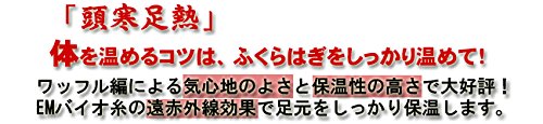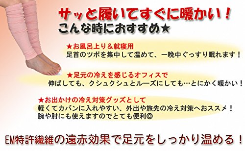 EMバイオ系の遠赤外線効果により暖かいレッグウォーマーなので、薄手でありながらも秋冬のアウトドアや睡眠時にも足首・ふくらはぎ・膝の冷え性対策ができます。高級コットン混紡素材を材料に使っていて、保温性に優れているので冬用として使えることはもちろん、放湿性にも優れていますので夏用レッグウォーマーとしても活躍してくれます。カラーが全部で7種類と豊富に揃っているので、お好みの色より選んで使えます。洗濯は手洗いもしくはネットに入れて他の衣類と絡まないように洗濯することを推奨している人気レッグウォーマーです。