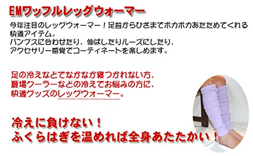 EMウェアジャパンのEMワッフルレッグウォーマーは、膝の位置から足首までの位置までの覆える約50cmのロング丈レッグウォーマーで、メンズとレディースが兼用で使える人気商品です。