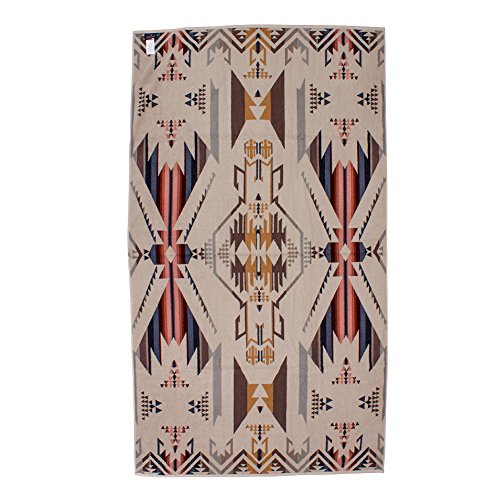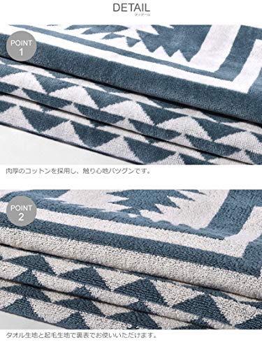 落ち着いた風合いのホワイトサンドカラーで、ブランドならではのネイティブアメリカン柄の商品です。表生地には肌触りが良いベロア風仕上げとなっており、裏側はパイル状のタオル生地となっています。