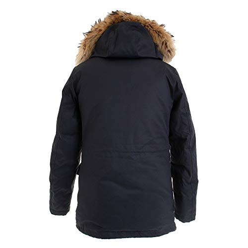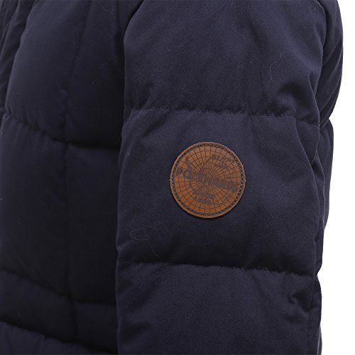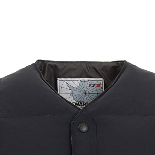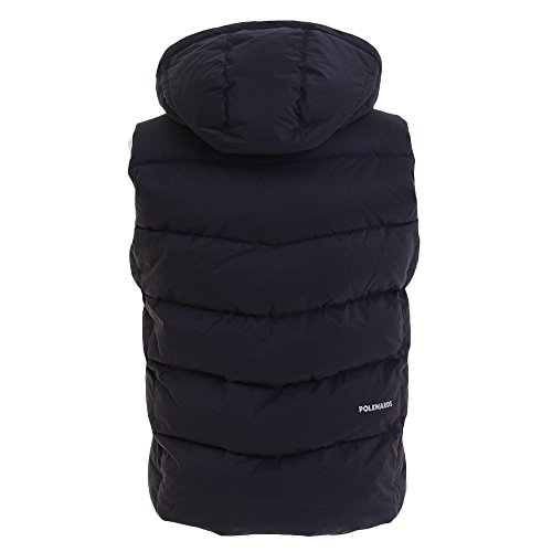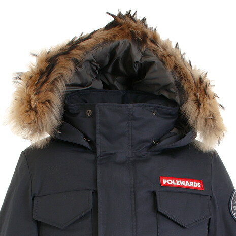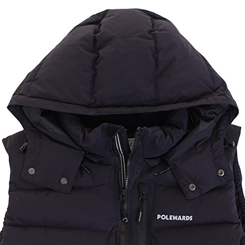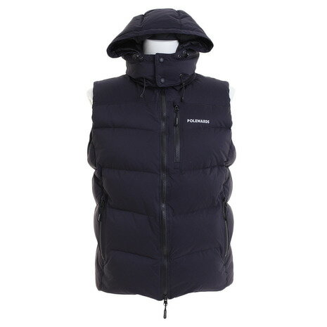 ベストの胸元部分にはポールワーズの英文字が付いていてワンポイントになっています。表地は防水性にも優れているため、雪や雨の水分がしみ込まないようにして体を冷やさないように着られます。身頃を寒さから守るだけでなく、頭や顔のサイドも寒さから守れるダウン入りの暖かいフードも付いているダウンベストです。色はネイビー1色で、サイズはM・Lから選べるメンズ用ダウンベストです。