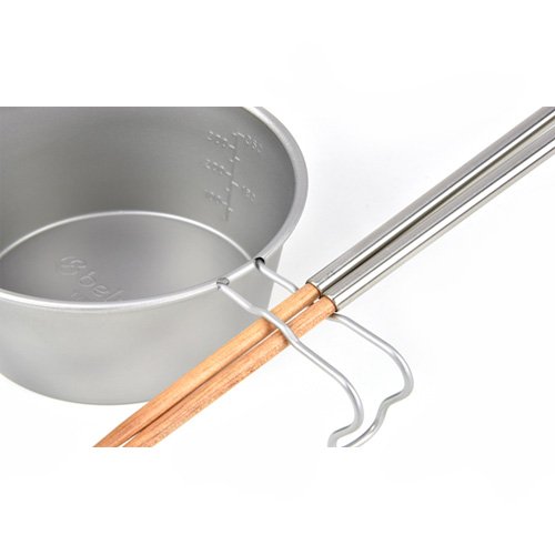軽量かつ耐久性の高いステンレス素材で、ご飯もふっくら炊けることで人気を集めているシェラカップです。ハンドル部分にフォークやスプーン、箸をかけておけるため、カトラリーの置き場に困るアウトドアシーンでも重宝します。内側にはメモリもつき、料理中の計量カップとしても活躍するでしょう。