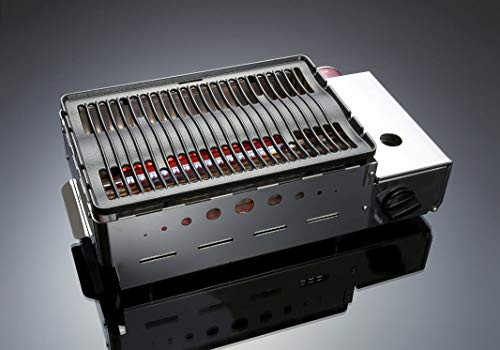 食材から出る油が直接バーナーに落ちない構造となっているため煙が出にくいというメリットもあり、自宅内でも焼き肉・焼き魚を快適に楽しめます。セラミックから放出された遠赤外線や放射熱により、お肉を中までジューシーに仕上げられて外側はカリッとした食感にできます。高級感がある分厚いステンレス素材をロースター全体に使っているため、サビにも強い特徴もあります。新品のガスボンベ一本で約4時間半と長時間使えるカセットコンロになります。