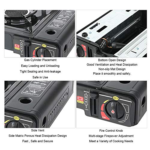 3.5kWnの高火力でフラット底の鉄板焼きプレートも素早く加熱することができ、美味しい料理を作る事が出来ます。最後まで火力を低下させないで、ガスをほぼ完全に消費可能なヒートパネル方式も採用されています。メーカーならではのマグネット方式を採用していますので、カセットボンベをセッティングすることもすばやく簡単にできます。ボンベ温度が上がったら自動でガスを遮断する圧力感知装置付きで、卓上でも安全に使用できます。