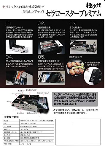 東洋というメーカーより販売されているこちらのセラロースタープレミアムは、カセットボンベをセッティングしてご自宅内で安全に使える人気コンロです。料理を使った後のお手入れも簡単な人気ロースターです。高級な商品ですが、一生モノのカセットコンロとして愛用していけるおすすめ商品になります。