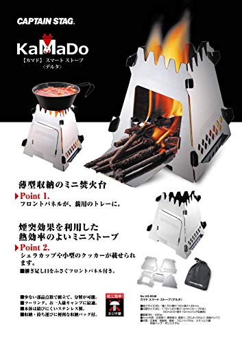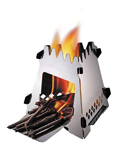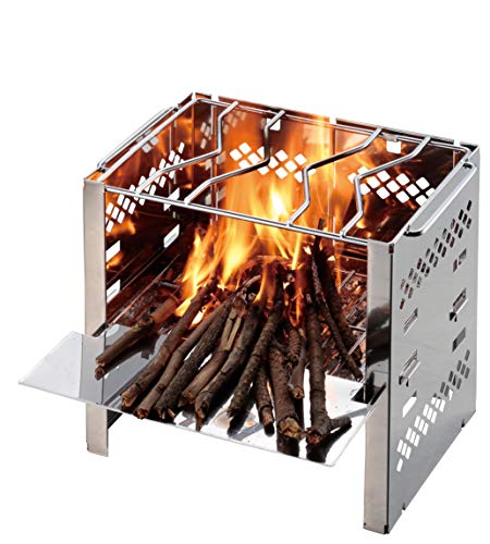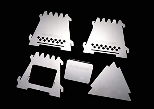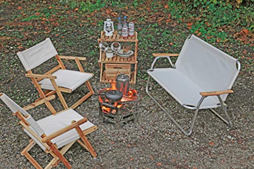 煙突効果があり燃焼効率のいいウッドストーブですが小さな焚き火も楽しめるようになっています。使い方は下からちょうどいい大きさに切った薪を入れていくだけとなり、下から空気を取り込みながよく燃えてくれますよ。上部は五徳の用意なっていてシェラカップなどで簡単な調理もできます。組み立て式になていて収納するときは5枚のプレートになるため非常にコンパクトになることから、ミニマム装備でのソロキャンプにおすすめです。