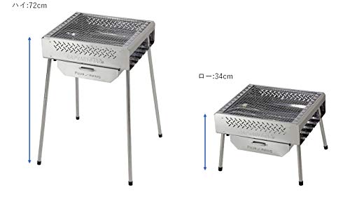 本体の大きさは465×405×高さ340・720mmと高さを二段階に調整できます。組み立て方は非常に簡単でネジなどを使わないため工具も不要となり、脚部パーツを本体の穴に通していくだけです。高さを変えるときも同じように脚部同士を接続するだけになります。収納時は650×550×高さ120mmになり本体の中に脚部パーツが収納でき意外とコンパクトにまとまります。重さは3.7kgになるためオートキャンプにおすすめです。