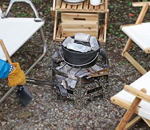 ファミリー向けのやや大きなヘキサ型の焚き火台、バーベキューコンロ、グリルです。基本的に小型のモデルと変わりませんが大きさは475×410×高さ300mmにもなりダッチオーブンも使えるようなっています。ダッチオーブンという本格的な料理をするには欠かせない調理器具に対応したことから焚き火より料理をメインにする方にもおすすめです。同じようにダッチオーブンに対応し色違いもあり他のキャンパーとかぶりにくいものもあります。