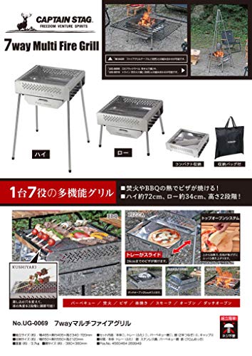 高さが変えられ、7通りのもの多彩な使い方ができる2020年の新作焚き火台です。使い方はバーベキューや焚き火といった従来どおりの使い方の他にピザ窯になったり、燻製器(スモーカー)やダッチオーブンでの料理、串焼きにも対応していて一台あるだけでバーベキューのレパートリーが一気に広がりますよ。ピザは24cm、ダッチオーブンは10インチ(25cm)の大きさに対応し家族にちょうどいいサイズとなります。