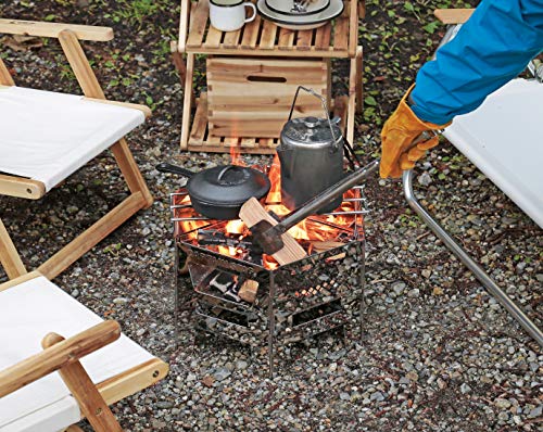 大きいため薪のサイズを調整しなくてもそのまま使える点、ダッチオーブンなどの重たいものを入れてもしっかり安定している点などが評価されています。小型のものと比較すると製品の大きさは変わっていますが、収納方法、組み立て方は変わらず、スリムになりソロキャンプでも使いやすいと評価されている人気商品です。