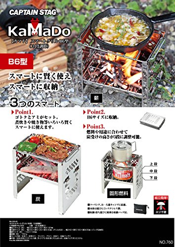コンパクトなかまど型の焚き火台兼グリルと言うと笑’sの「B6君」が有名ですが、キャプテンスタッグにも似た製品があります。ソロキャンプに非常に便利な製品でバーベキューグリル、コンロ、固形燃料やアルコールストーブ、分離型ストーブの五徳兼風防と多彩な使い方ができますよ。枝を入れると焚き火台としてもきちんと使え、組み立て式のため収納時もコンパクトです。非常に使い勝手がよく大人気の商品となっていますよ。