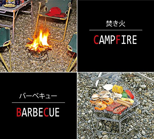 コンパクトなバーベキューコンロ、グリルとして使える使い方の豊富な焚き火台です。人気のV型で組み立て方が非常に簡単です。サイズは235×185×高さ210mmと非常に小さいためソロキャンプでなおかつ自転車やバイクツーリングに向いています。編みや五徳が付いてきて焚き火と一緒に料理するを楽しめて価格も安いということで非常に高く評価されています。収納時は310×210×40mmと薄く携帯性が高いです。