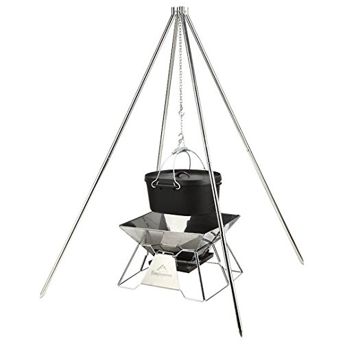 小型&軽量ながらも耐荷重が約20kgまでと頑丈な造りで安定感良く設置できる人気トライポッドです。チェーンの長さを調整する事が可能となっていますので、ダッチオーブンをちょうど良い高さにして焚き火台の火にかけられます。調理器具だけでなく、軽量なランタンを吊り下げてランタンフックとしても便利に使えます。使わないときにはコンパクトにしまっておけて携帯することも簡単なキャリーバッグも一緒に付属されている人気商品です。