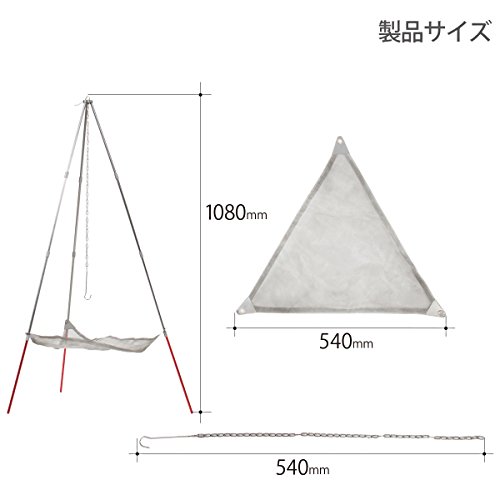 素材に鉄製を採用して作られている頑丈な作りのトライポッドで、地面にも安定感良く設置できます。長さ調節可能なチェーンを採用していますので、ダッチオーブンなどの調理器具の大きさや、焚き火台の大きさに合わせて高さを設定することが可能です。使わない時はそれぞれの部品をばらしてコンパクトにでき、専用のハンドル付き収納袋の中に収められますので持ち運びも簡単です。