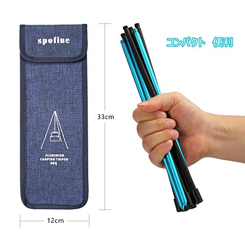 SPOFINEのキャンプ用トライポッドは、三段折りのネジ式設計となっているため、組み立ても非常に簡単なアウトドア用トライポッドです。使わない時には折りたたみしてコンパクトにしまっておける収納袋もついていて、全体の重さも約415gと軽量なので持ち運びも簡単です。選び方ではブルー・オレンジの2色から決められます。