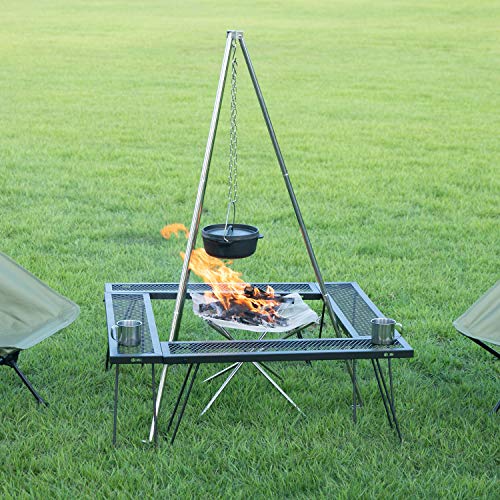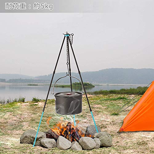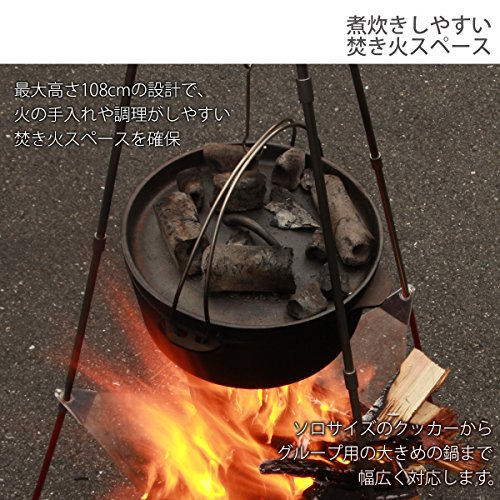 4本脚タイプで耐荷重90kgまでと頑丈なので、安定感よくダッチオーブンなどの調理器具を吊り下げられます。チェーンの長さは調節することができますので、調理器具の大きさや焚き火台の大きさに合わせて高さはちょうどよく設定できます。オリジナルの収納袋も一緒に付属されている商品なので、使わない時はコンパクトにバラして収納できます。同ブランドより販売されている焚き火台や囲炉裏テーブルと一緒に組み合わせて使うのもおすすめです。