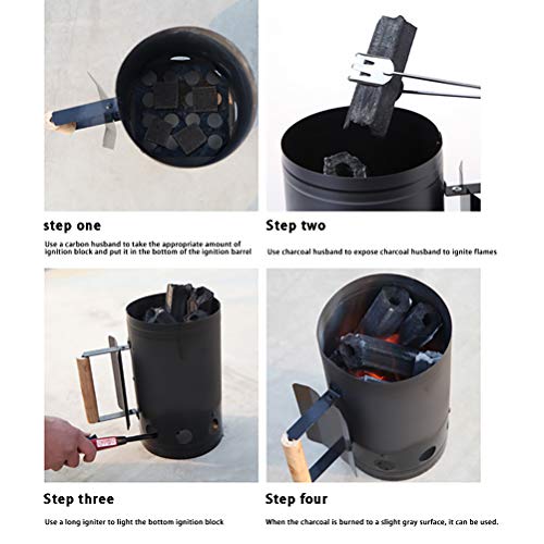 耐久性の高いスチール素材でできている火消し壺で、煙突効果により素早く火おこしができます。バーベキュー用の炭の片付け時には、上下の蓋を使って密閉消火することができます。