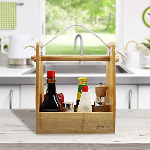 YOSHIKIのコンパクト調味料ボックスですが、サイズが33.5×15×33cmで重さが1.2kgです。また、素材が天然竹でできており、普通の木製のボックスとは違った味わいを感じることができます。