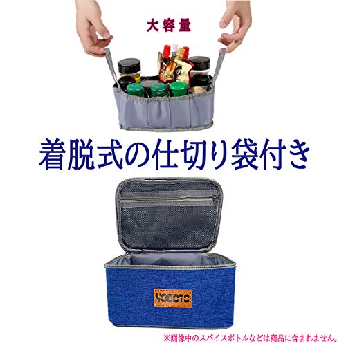 YOGOTOのサイズですが、25×18×13cmで、重さが210gです。カラーがこのブルーと、他にレッドタイプがあります。中には仕切り袋がついているのですが、取っ手がついて簡単に出し入れできるようになっています。
