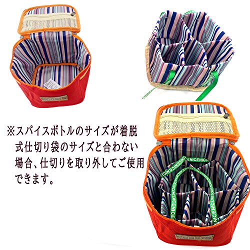 次はYOGOTOの布製スパイスボックスです。コンパクトタイプなのですが、とても便利な作りになっているんです。写真を見ても分かるように、蓋を開けると着脱式の仕切り袋がついているのでそれを取り外して中の入れ替えができます。